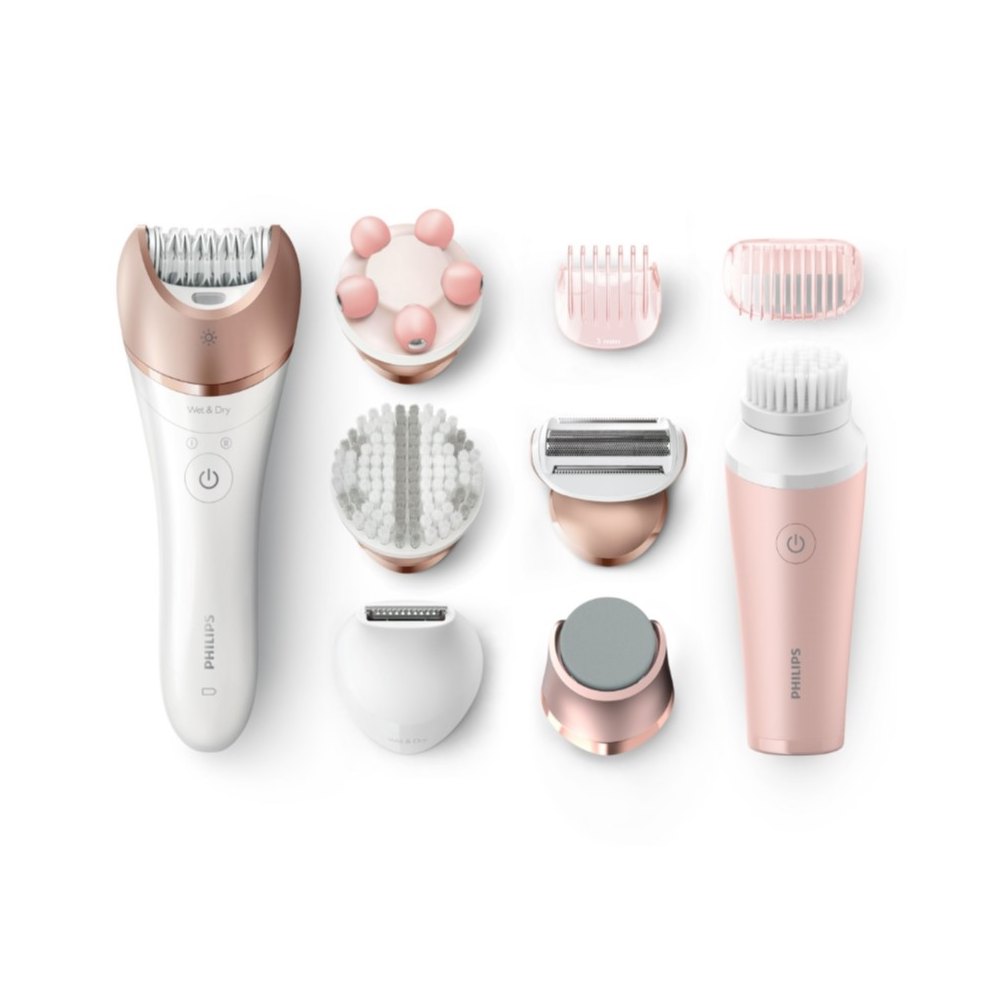 Kompletnú starostlivosť o hladké nohy a bezchybnú pokožku ponúka Philips Satinelle Prestige BRP586/00. Okrem epilátora získate tiež kefu pre peeling pokožky, masážny nadstavec, ale aj čistiacu kefku na tvár. Postaráte sa tak o odstránenie chĺpkov a tiež odumretých buniek pokožky na tele i tvári.