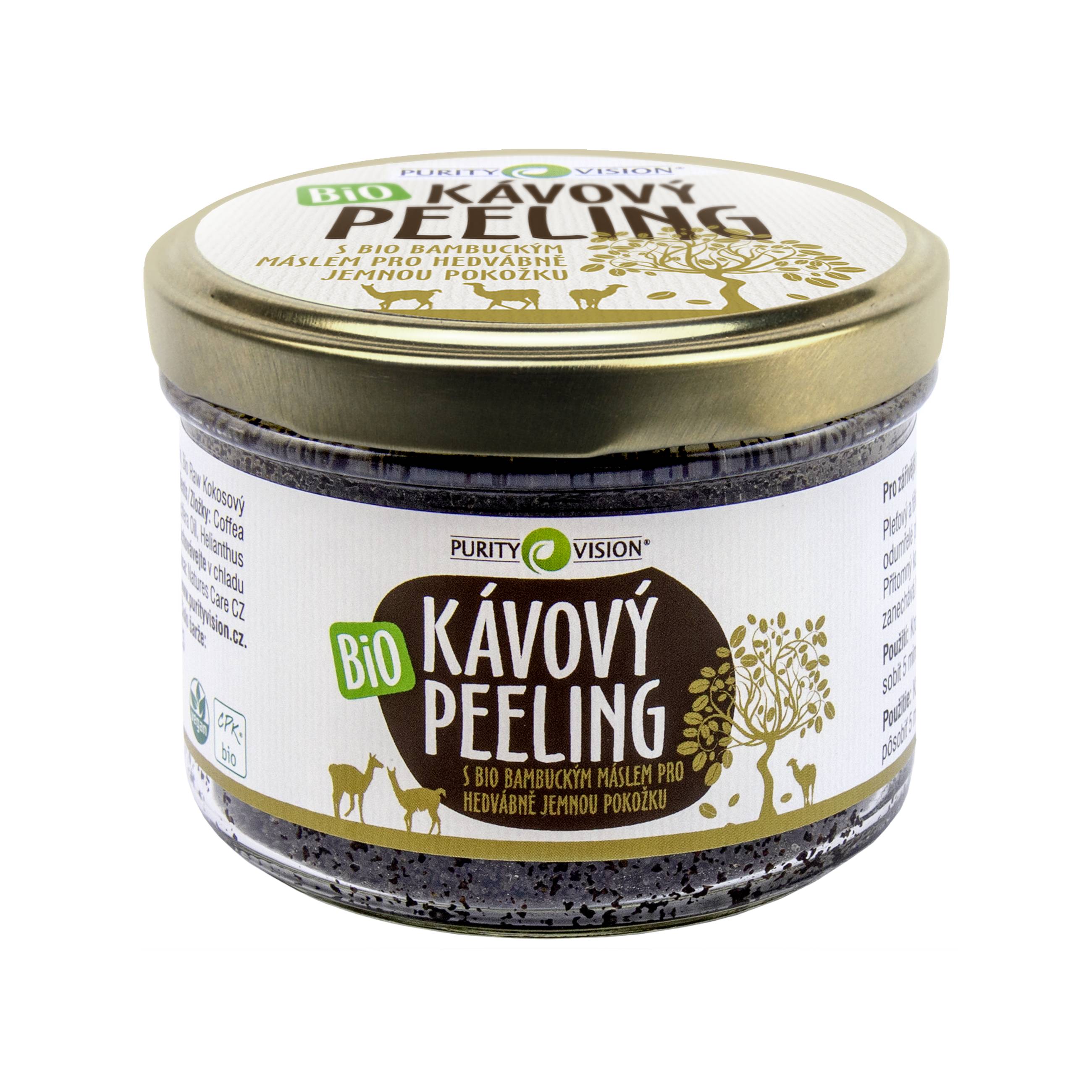 Bio kávový peeling s bambuckým maslom Purity Vision Coffee Peeling jemne odstraňuje odumreté kožné bunky a zanecháva pleť žiarivú a hebkú. Obsahuje kofeín, ktorý pomáha prekrvenie pokožky.